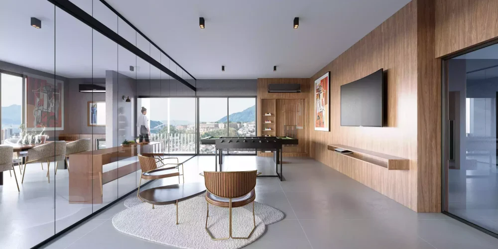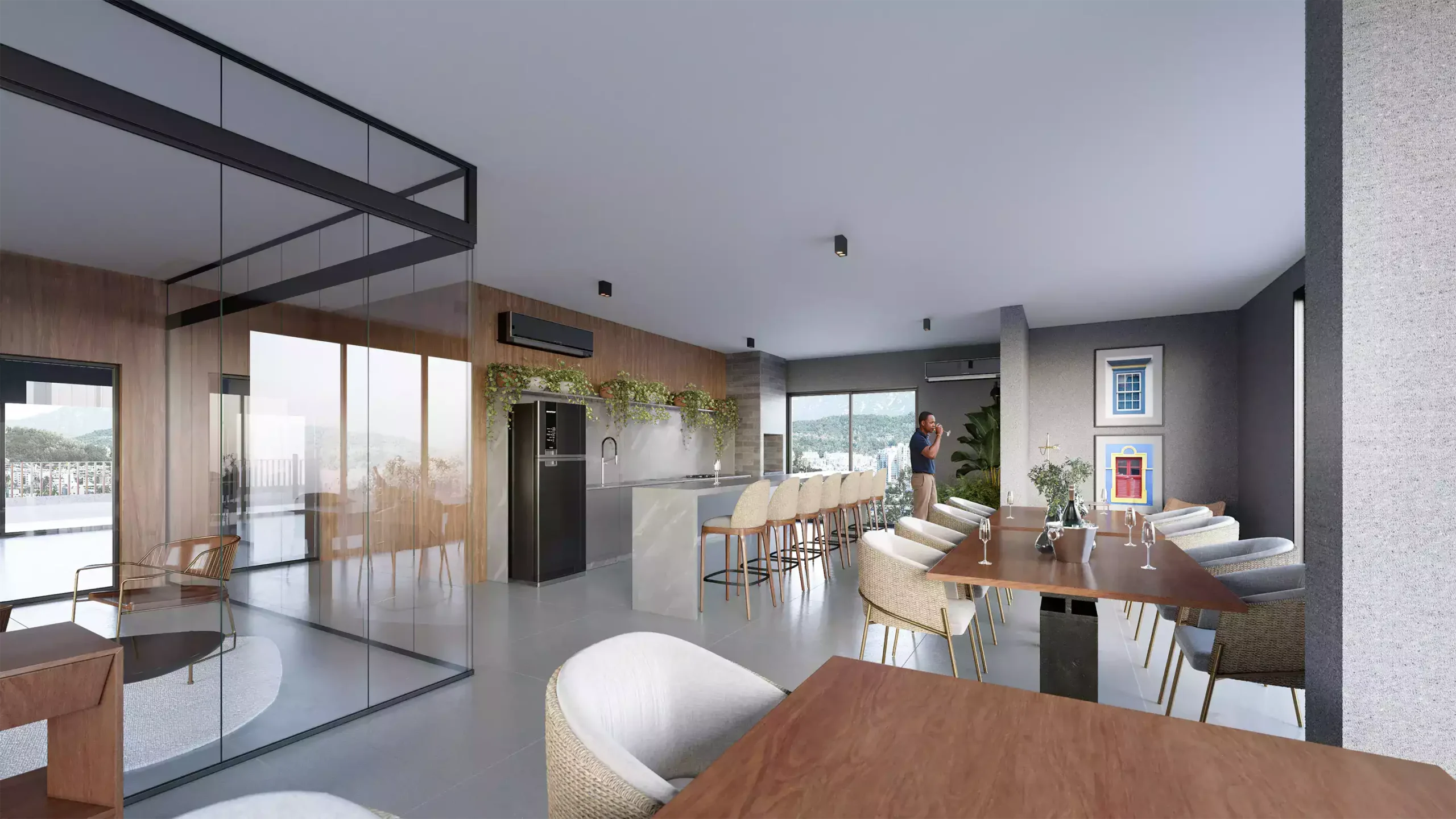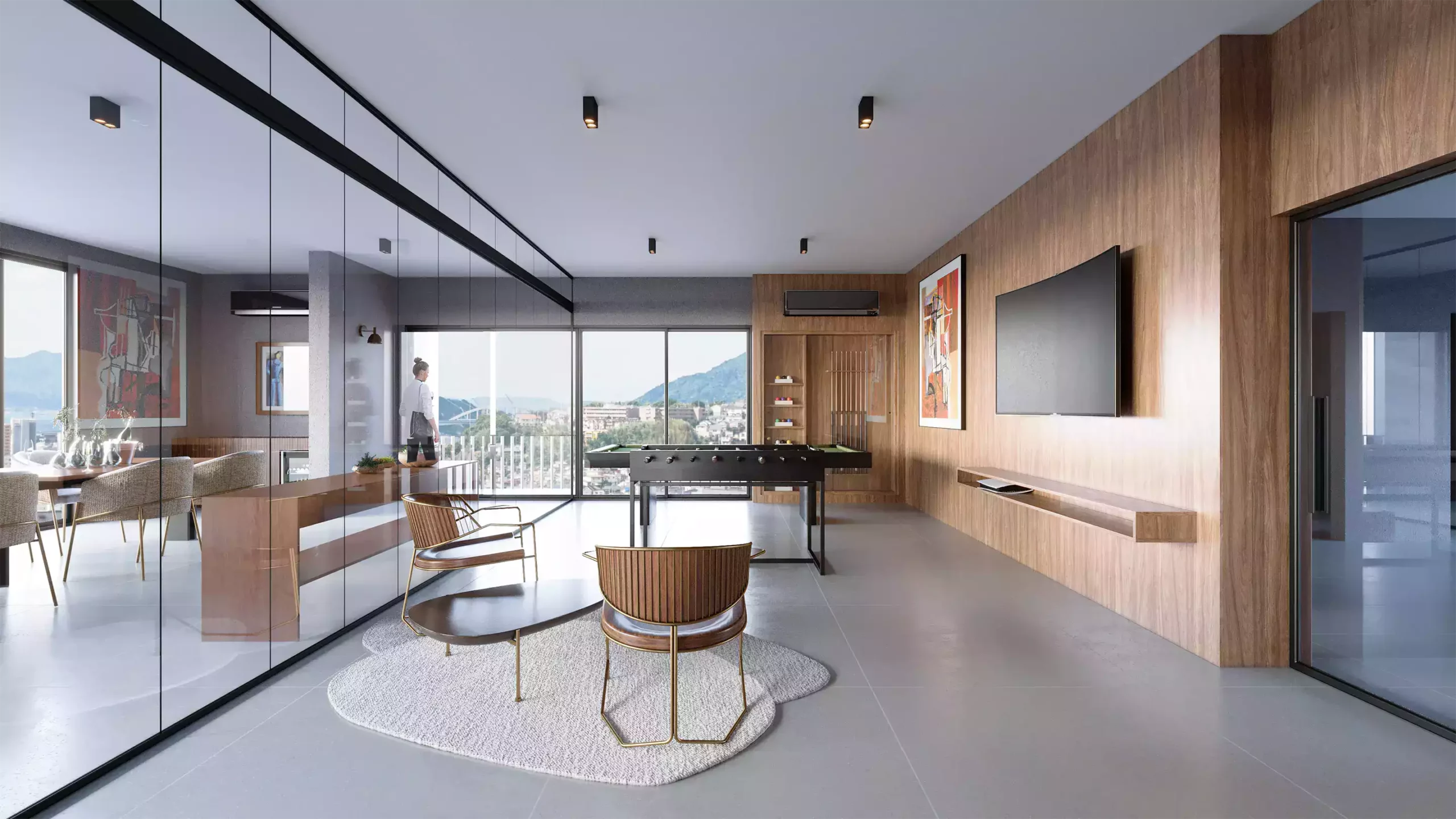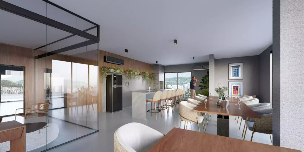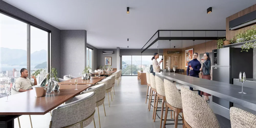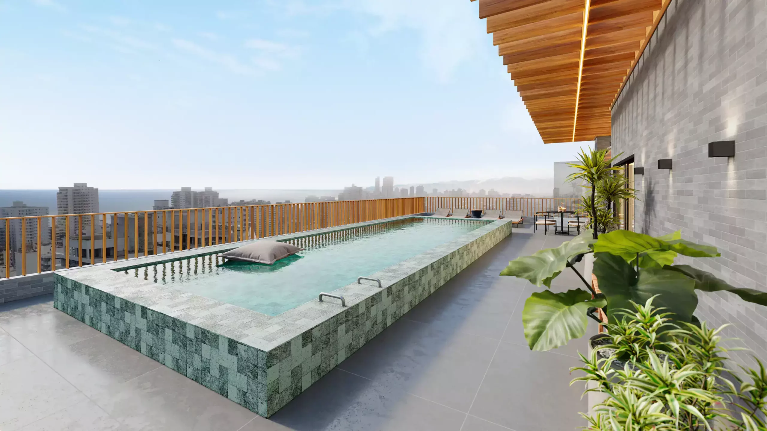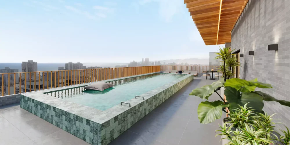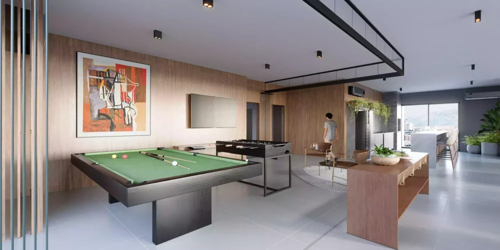 Empreendimento de torre única com apartamentos de 1, 2 e 3 dormitórios, de 74 a 104 m², com 2 vagas de garagem.