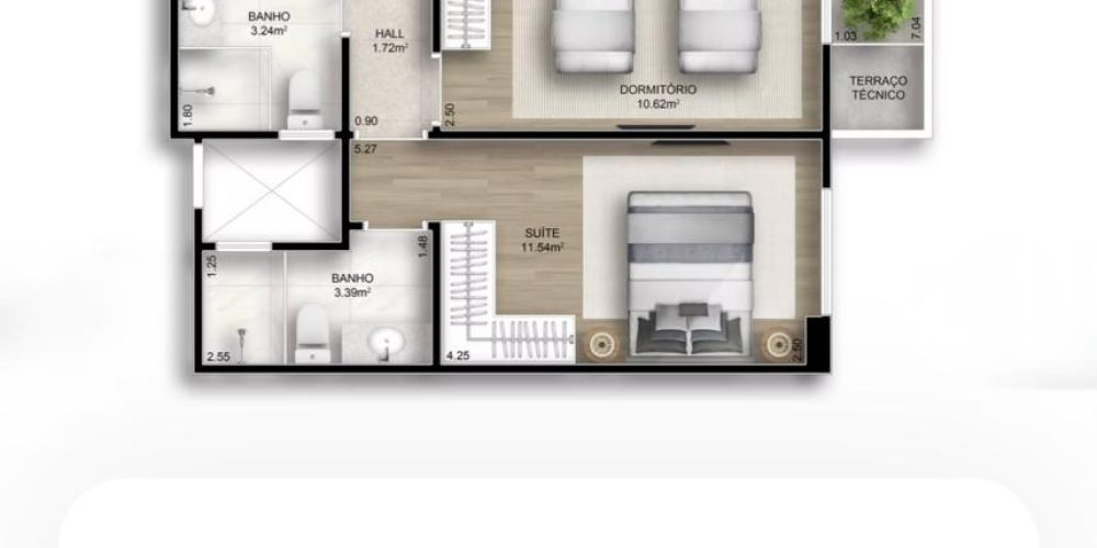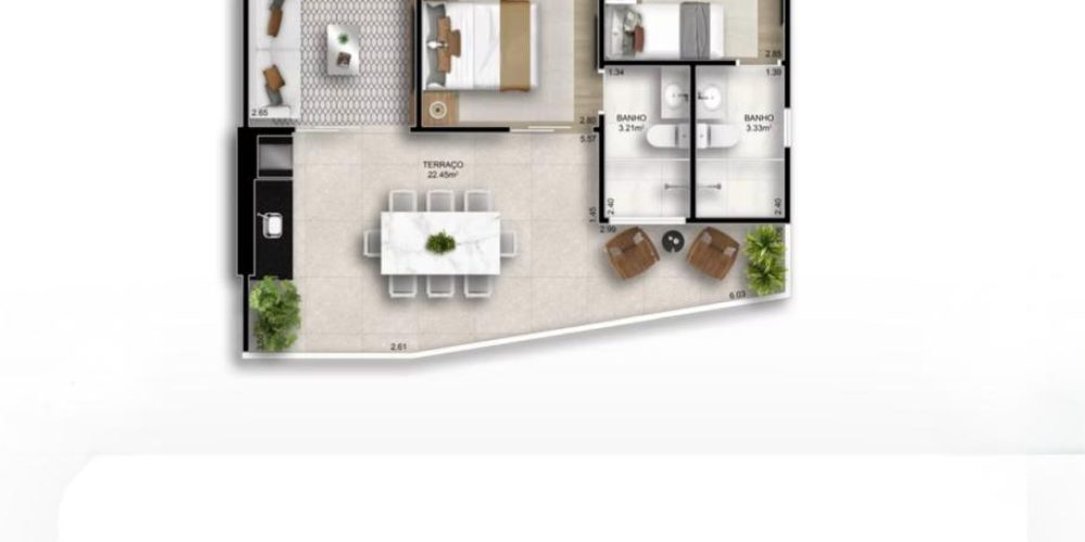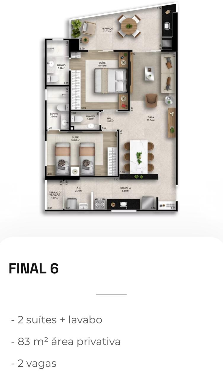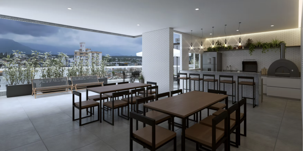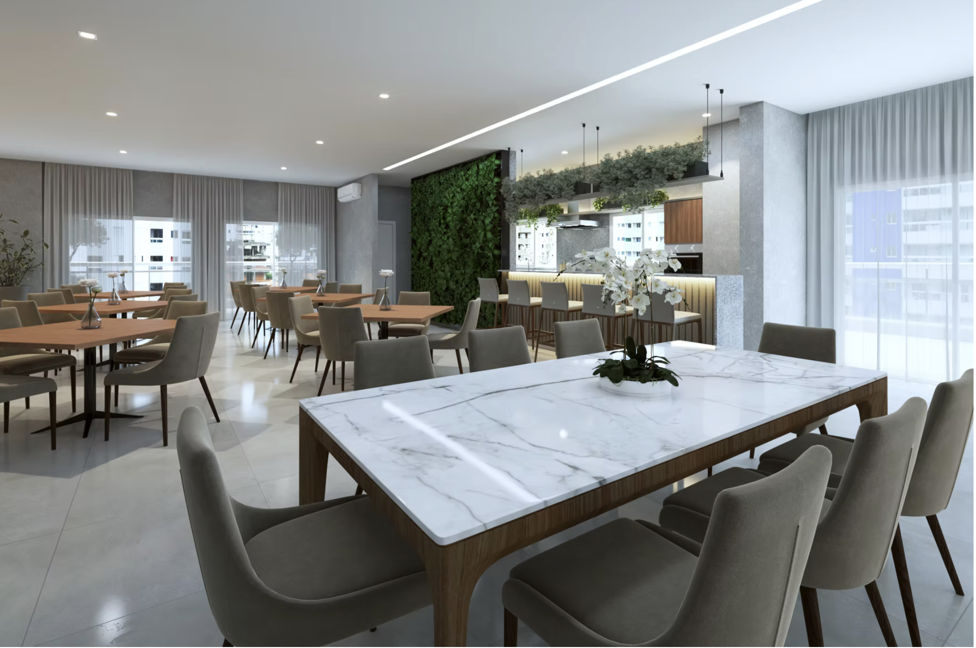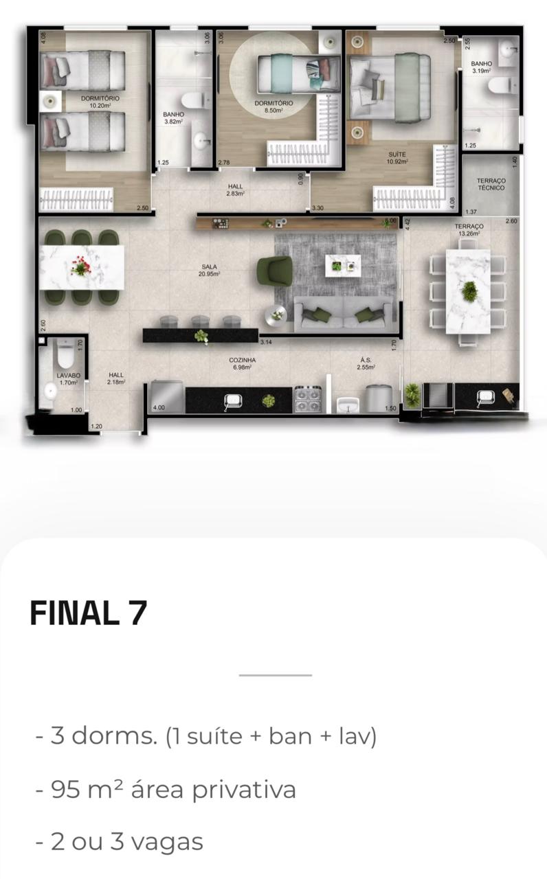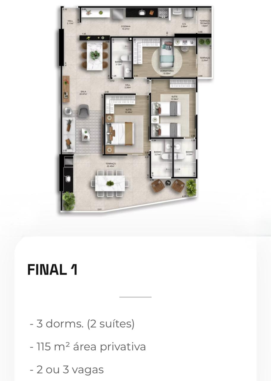 Empreendimento de torre única com apartamentos de 2 e 3 dormitórios, de 78 a 118 m², com 2 ou 3 vagas de garagem.
