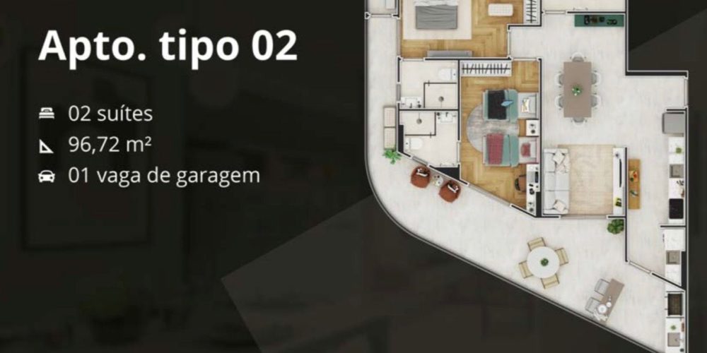 Empreendimento Frente Mar com apartamentos de 1 e 2 dormitórios, de 47 a 96 m², com 1 vaga de garagem.
